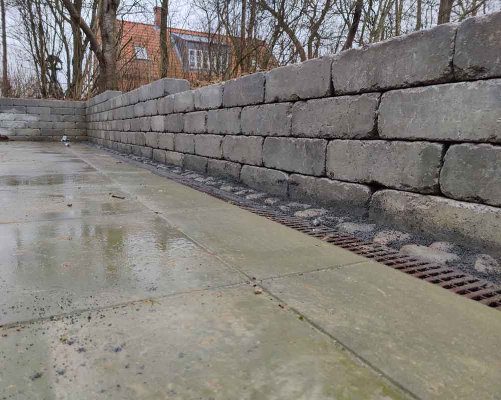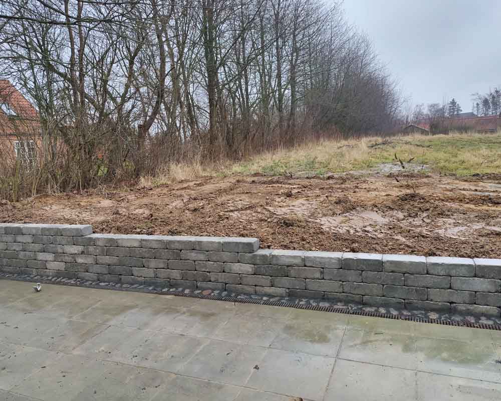 Uanset om du har brug for en lav eller høj støttemur, sikrer vi, at konstruktionen bliver stabil og langtidsholdbar.